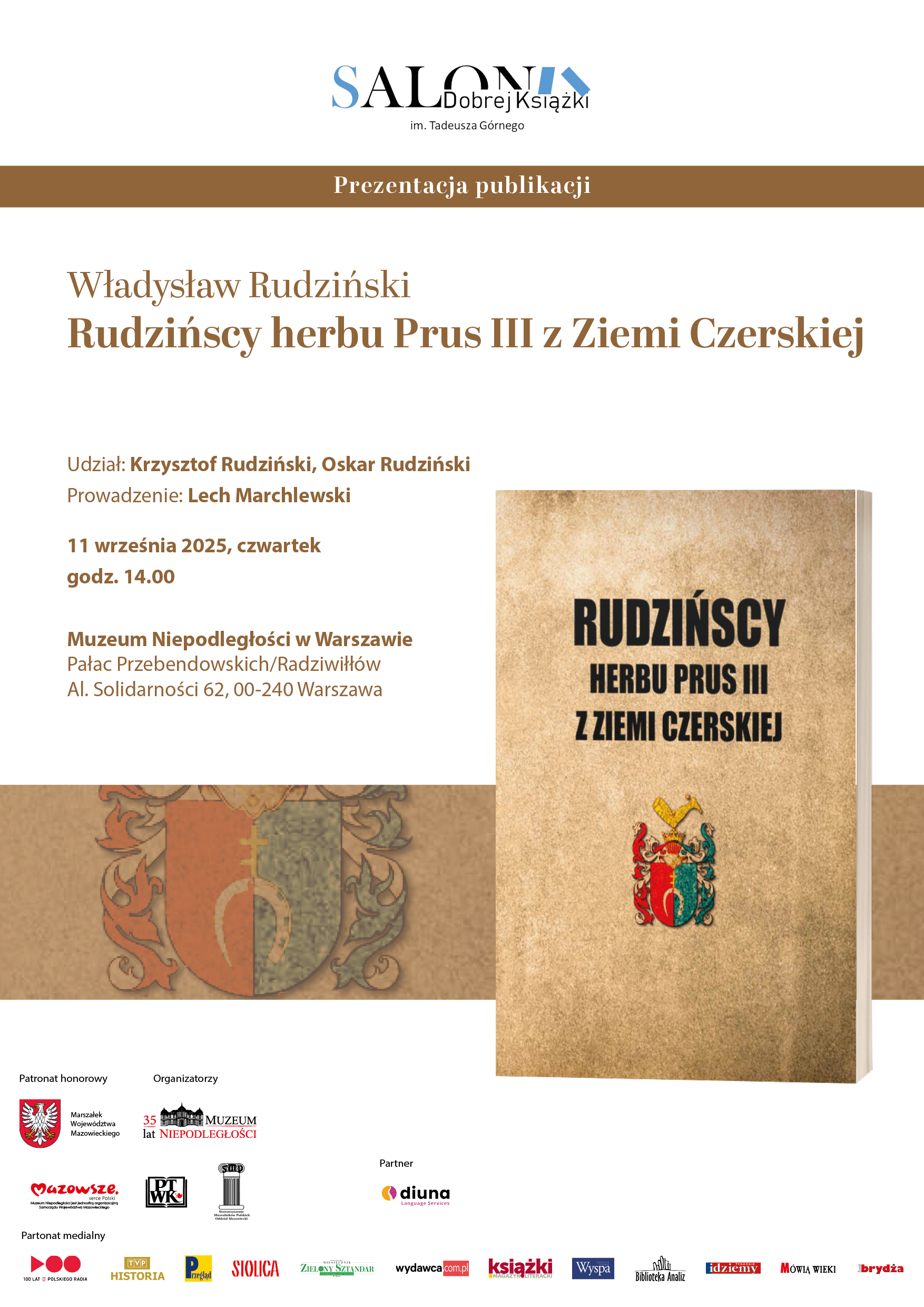 Muzeum Niepodległości w Warszawie zaprasza na prezentację niezwykłego albumu pt. „Rudzińscy herbu Prus III z Ziemi Czerskiej”, która odbędzie się w ramach Salonu Dobrej Książki im. Tadeusza Górnego.